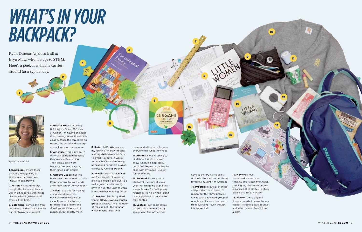 Rather than relying on traditional messaging, the strategy centered on creating something immersive and editorial. The result was Bloom, a magazine that “shows, not tells” through lively, student-driven content. Each issue features elements like advice columns, “What’s in Your Backpack” snapshots, and playful interactive components. The tone is light, empowering, and relatable — what the team describes as “girl power” energy.